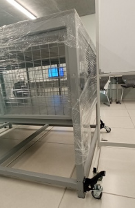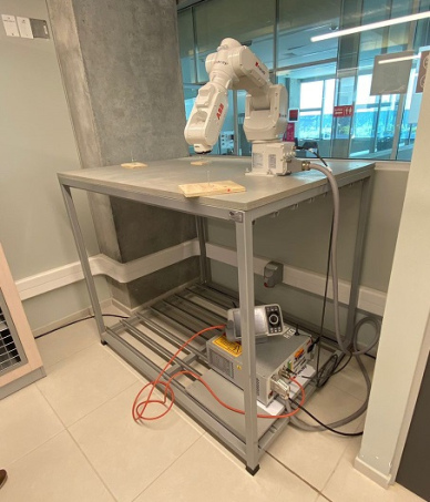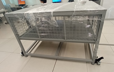 Mueble diseñado exclusivamente para un Robot de capacitación de estudiantes. Soporta el Robot y su unidad de fuerza. Tiene protecciones de seguridad