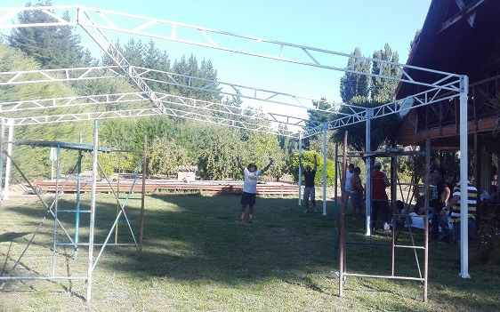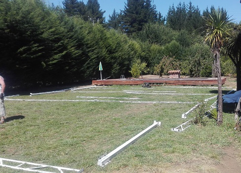 Estructura liviana y autosoportante. se puede desarmar y armar donde quiera. Su diseño contempla una cubierta de malla raschel que deje pasar el viento (no incluida).